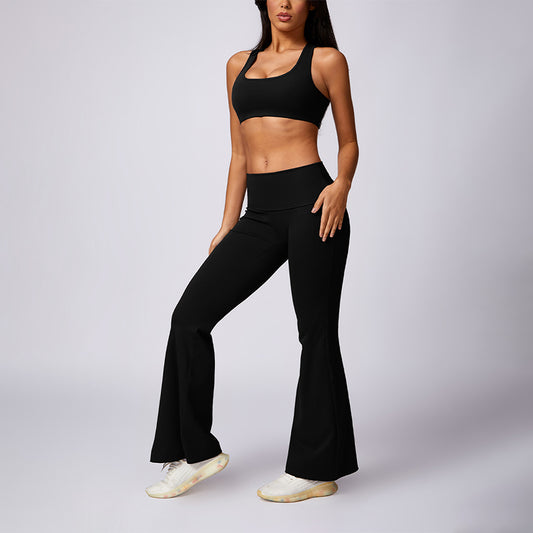 Nude Racerback Yoga reggiseno + pantaloni gambe svasate set a 2 pezzi