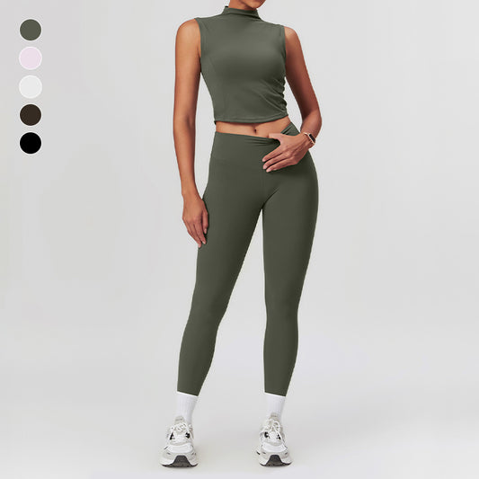 Slanted shoulder Sports Bra + High-waisted leggings 2-Piece Set