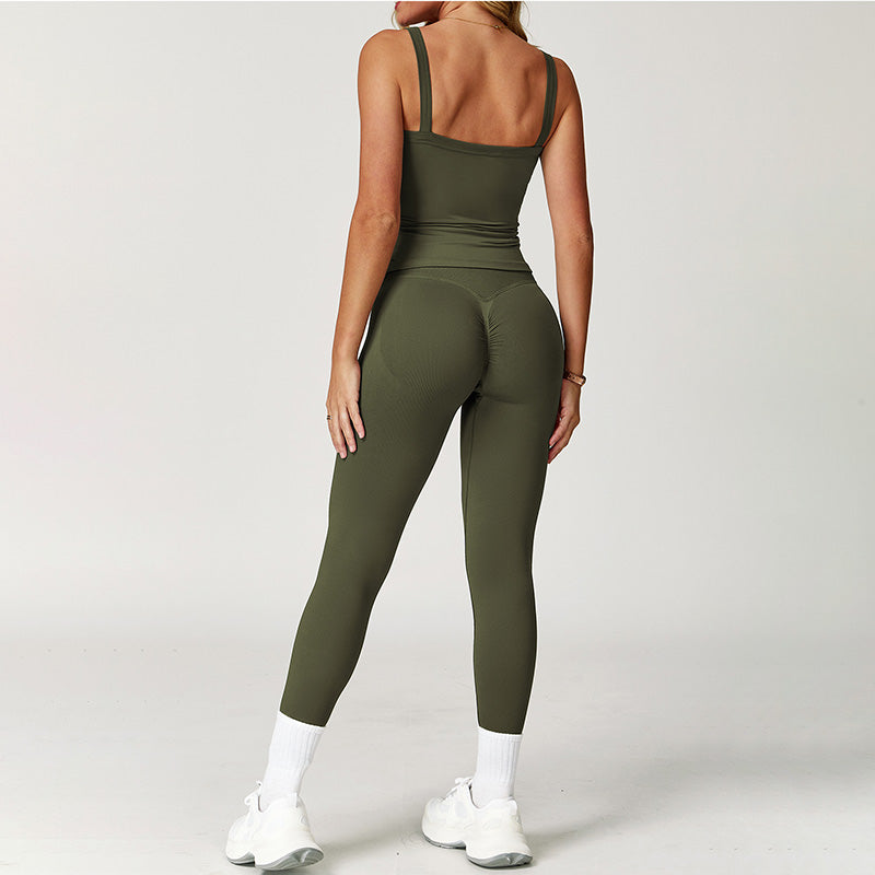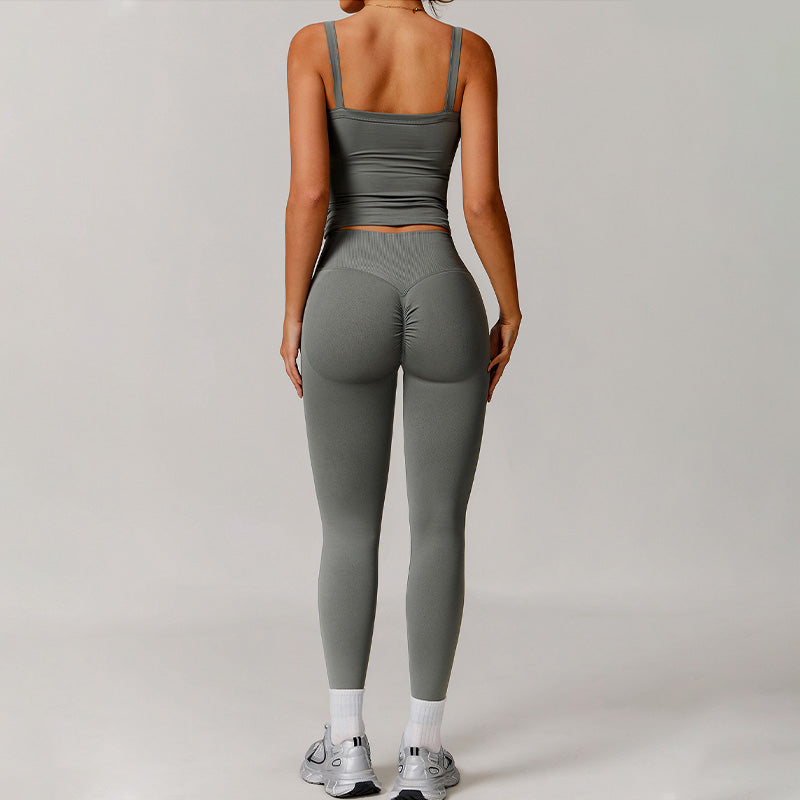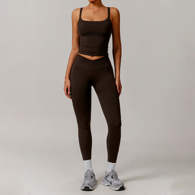 • Top canottiera sport sexy traspirata e set di gambe a vita alta