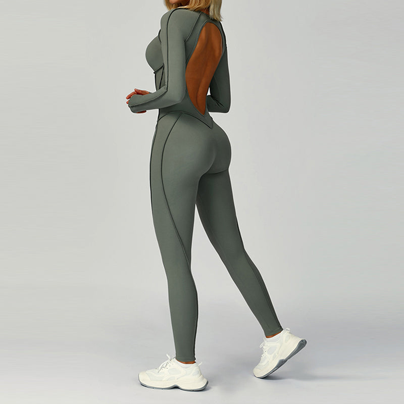 • Breathable snug fit backless long sleeve yoga leggings jumpsuit design