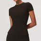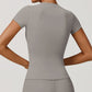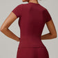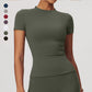 BRUSHED SHORT SLEEVE AND ROUND NECK YOGA TOP