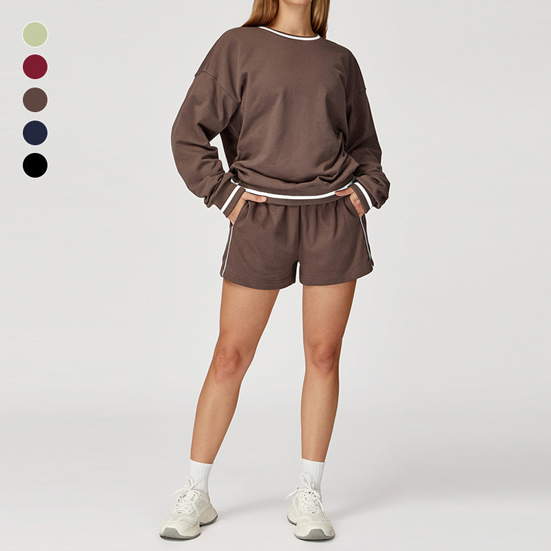 • Breathable loose and casual long sleeves sweatshirt and shorts set design