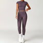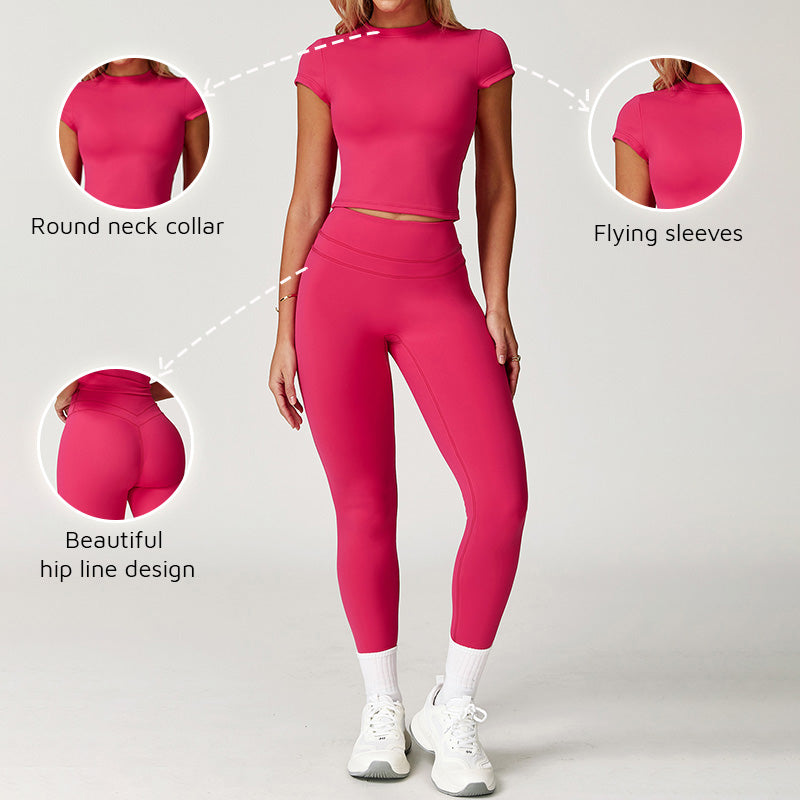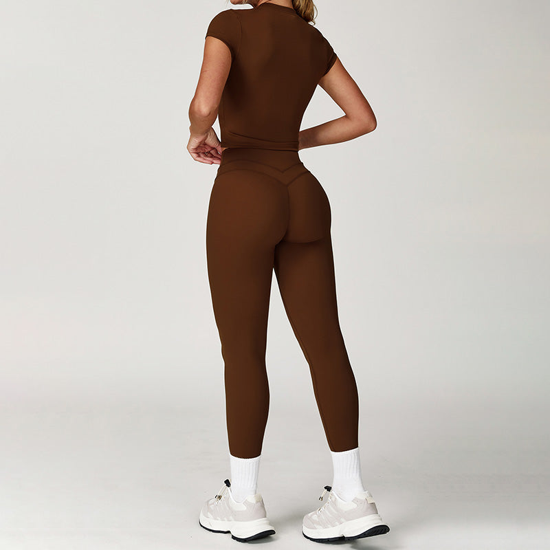 FITNESS BRUSHED SHORT SLEEVE YOGA TOP & HIGH-WAISTED LEGGINGS SET