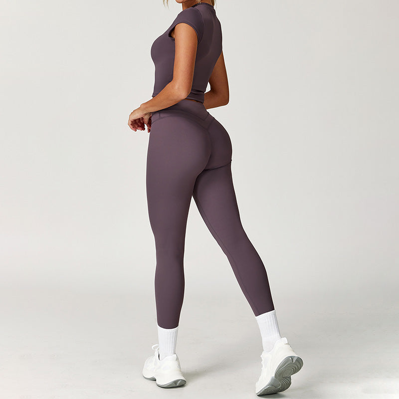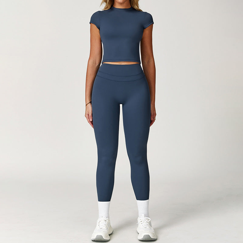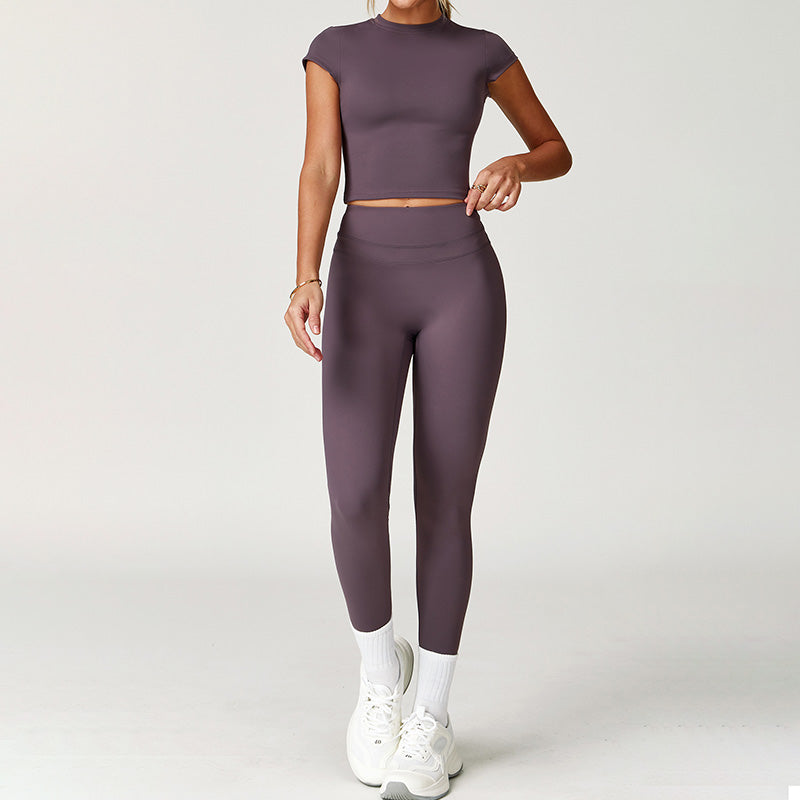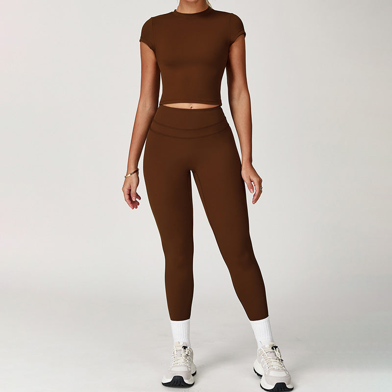 Fitness Brushed Short Sleeve Yoga Top & High-waisted Leggings Set Fitness Brushed Short Sleeve Yoga Top & High-waisted Leggings Set