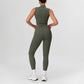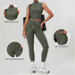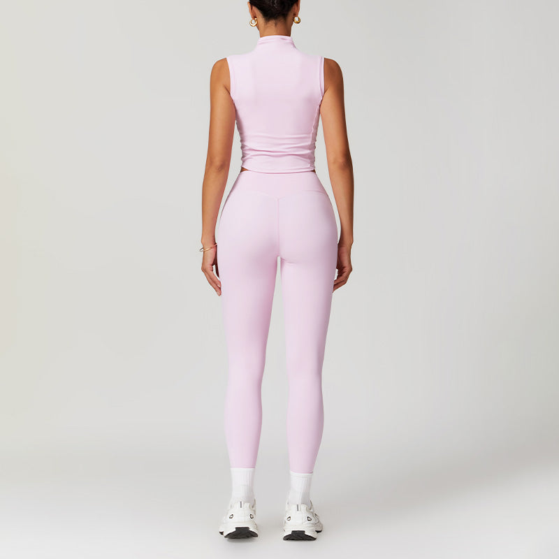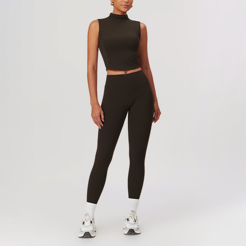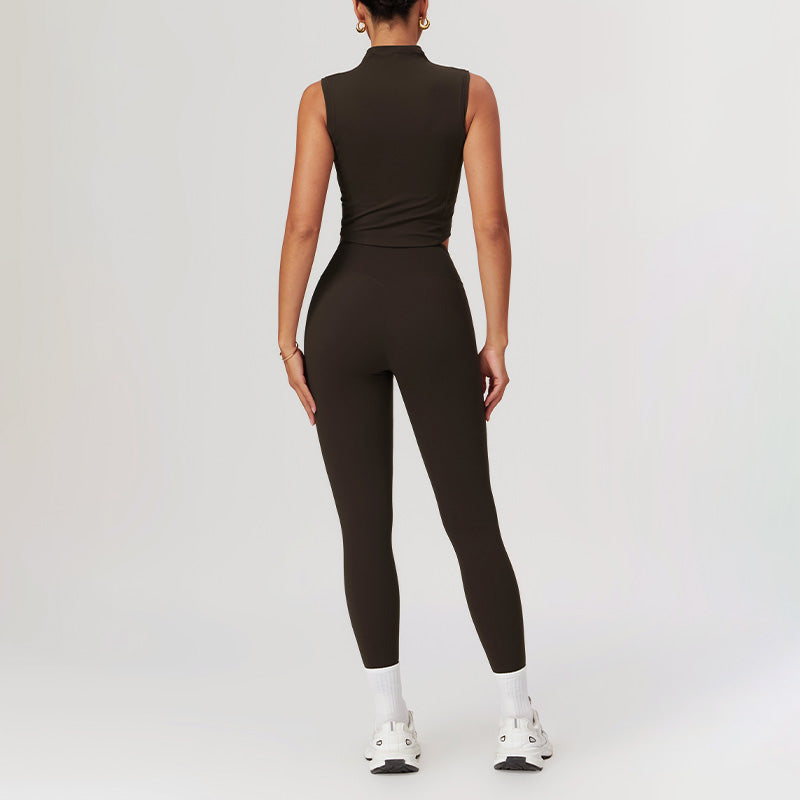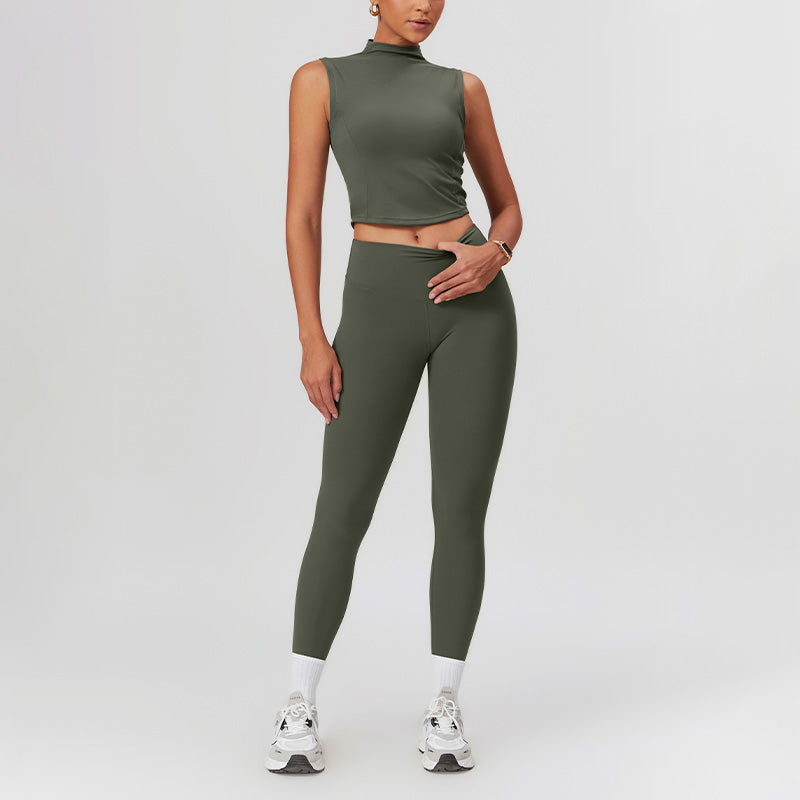 • Breathable high collar sleeveless tank top & snug fit sanded yoga leggings designed & uniquely fit to flatter every size