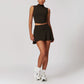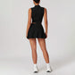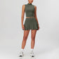 • Breathable high collar sleeveless tank top & snug fit sanded yoga fitness tennis skirts designed & uniquely fit to flatter every size