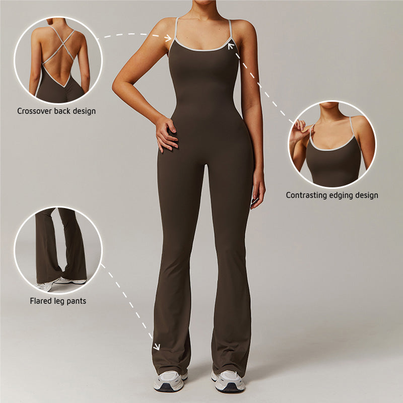 • Hollow back yoga suit hip-lifting pleated flared jumpsuit