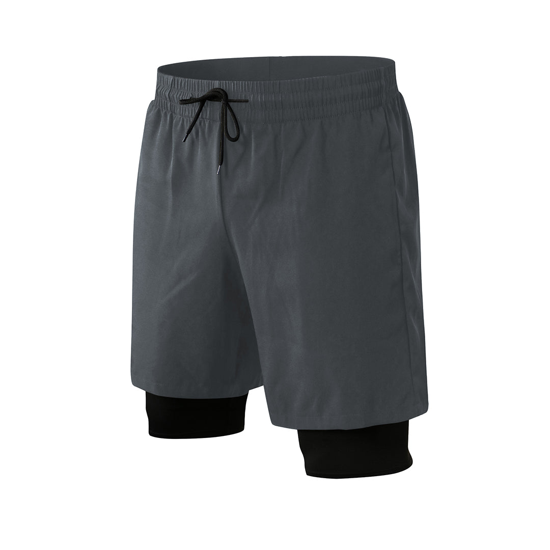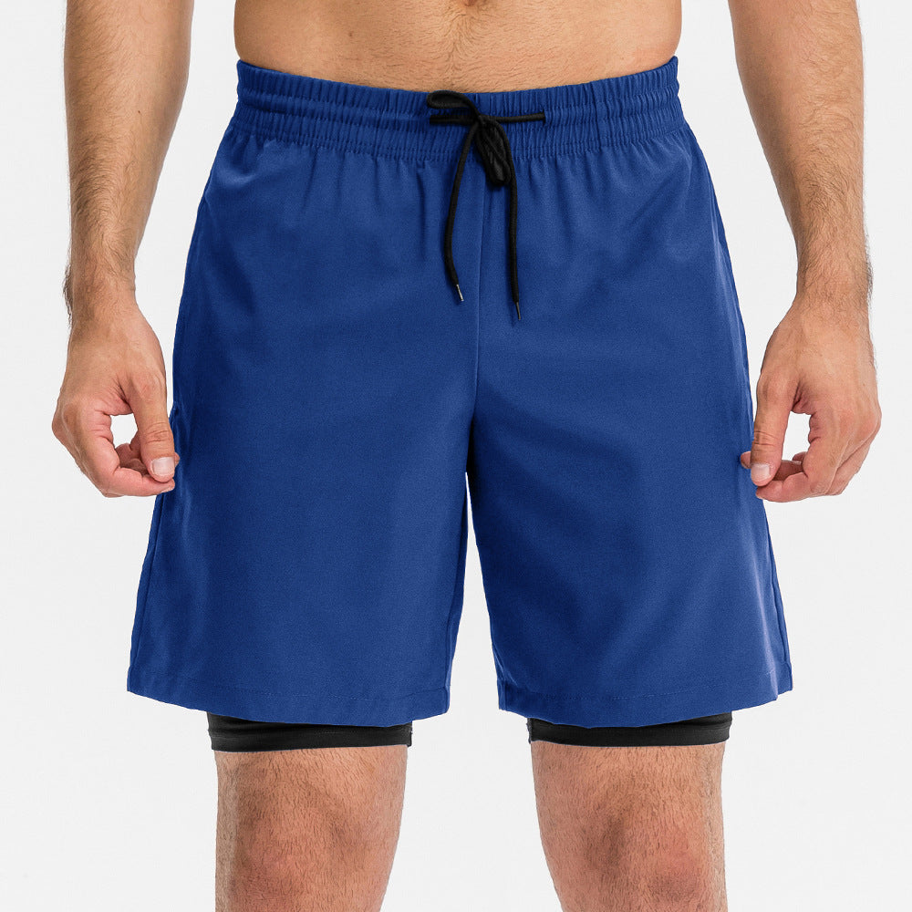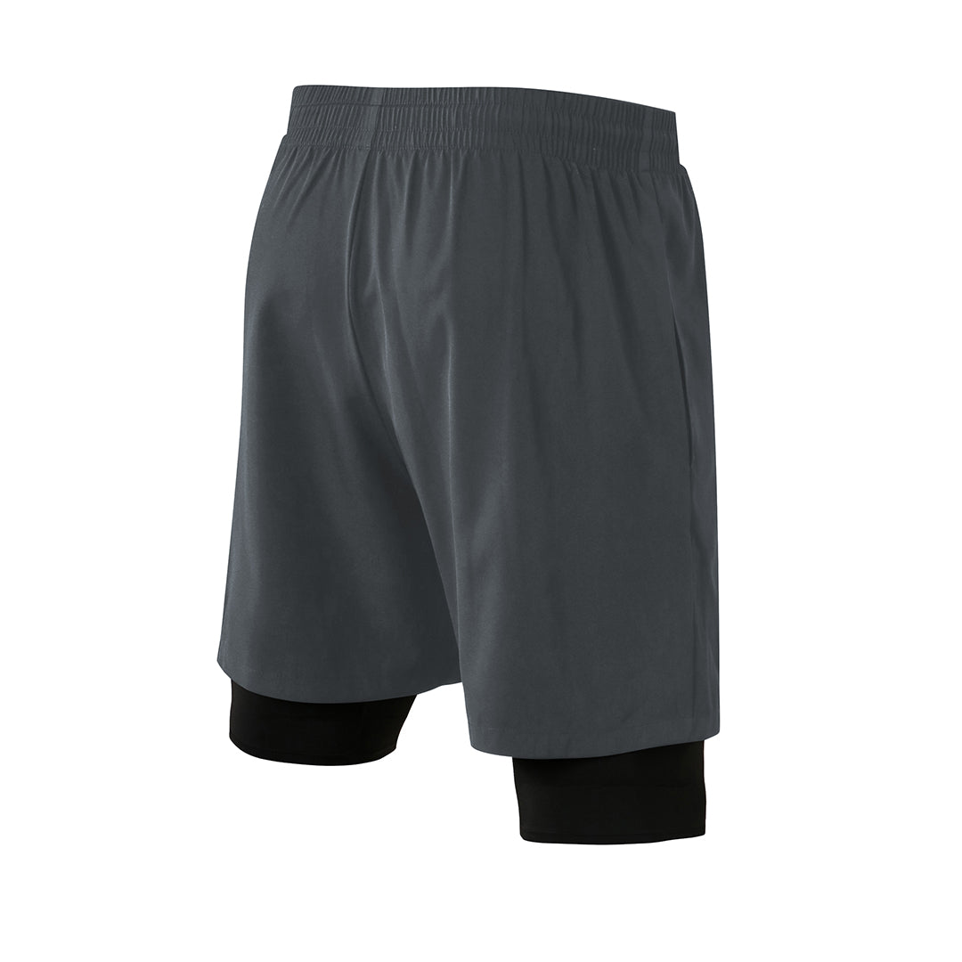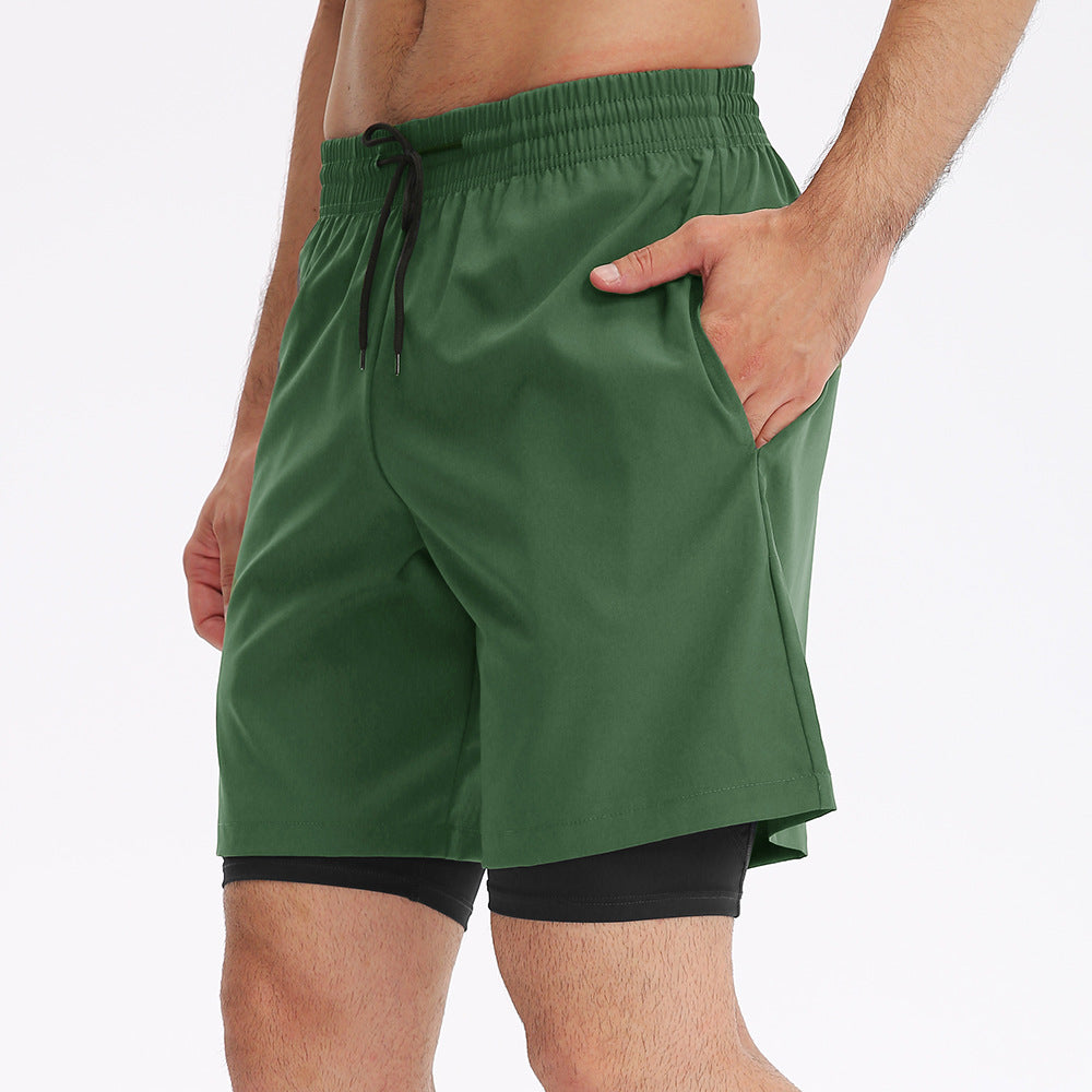 MEN'S FAKE TWO SOLID COLOR TRAINING SHORTS