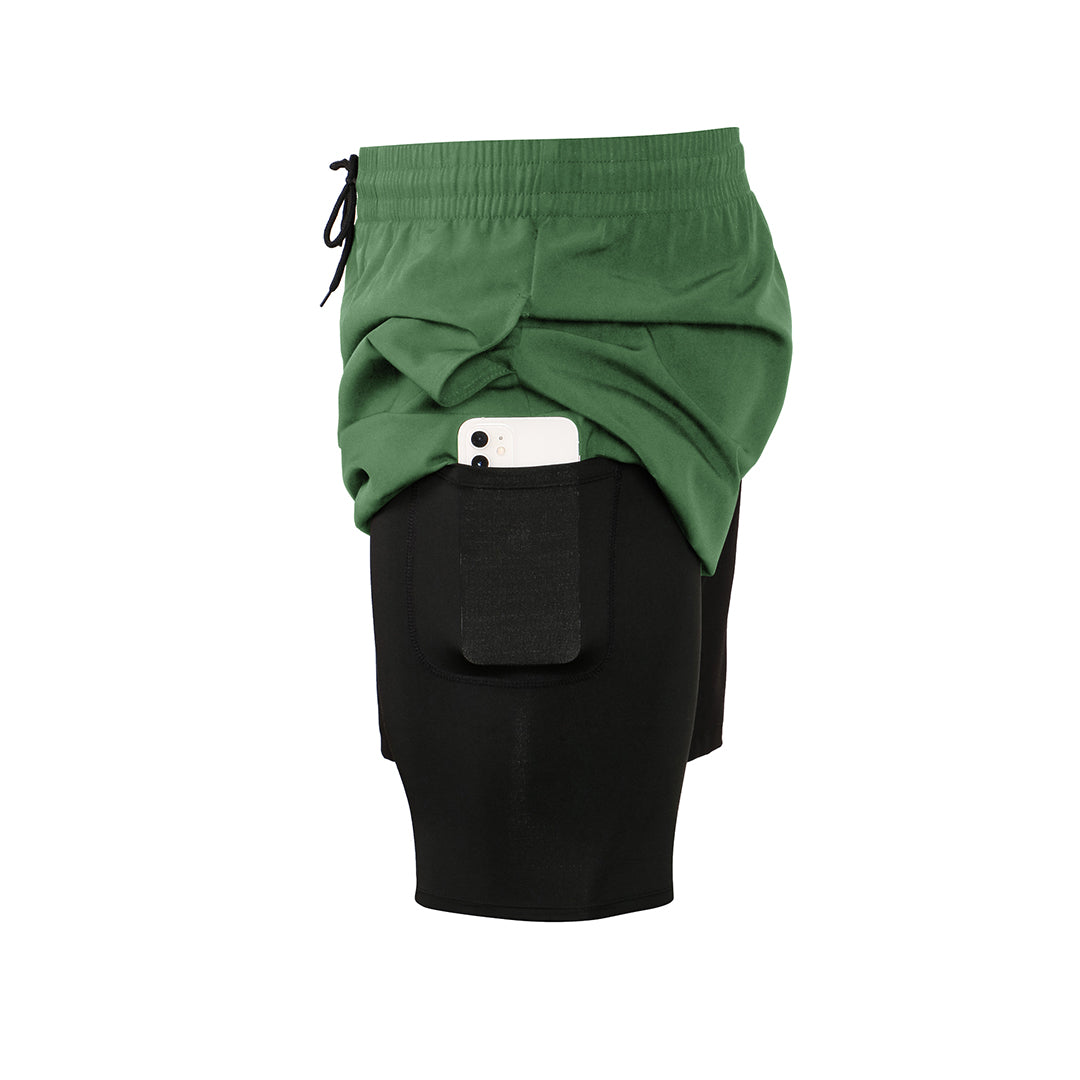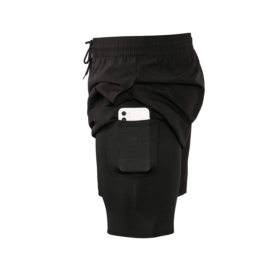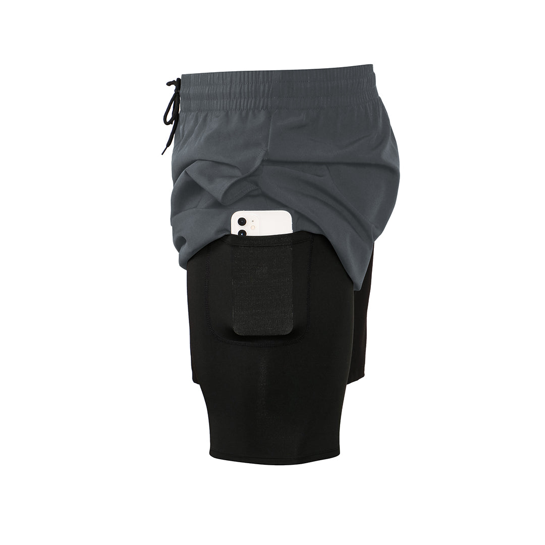 MEN'S FAKE TWO SOLID COLOR TRAINING SHORTS