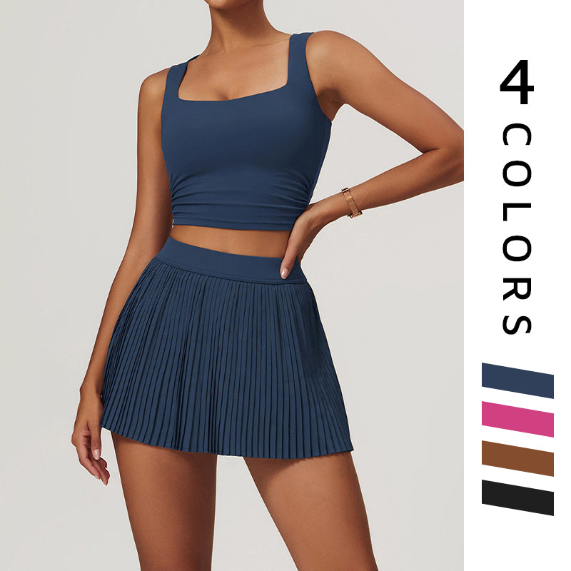 SKINNY BREATHABLE YOGA TANK TOP + SKIRTS 2-PIECE SET