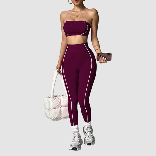 • Snug-fit square neck naked-feel long sleeves & high-waisted quick-dry flared pants 2-piece set