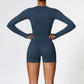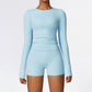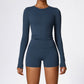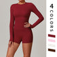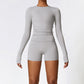 Brush long sleeve sports top & high waist Shorts 2 piece Set