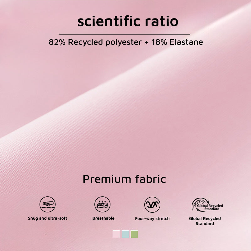 Fabric Composition: • 82% Environmentally friendly recycled polyester + 18% Spandex Fabric Features: • So buttery soft and fit body • Durable and shape-retaining • Four-way stretch • Moisture-wicking