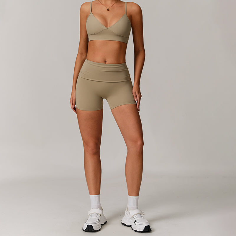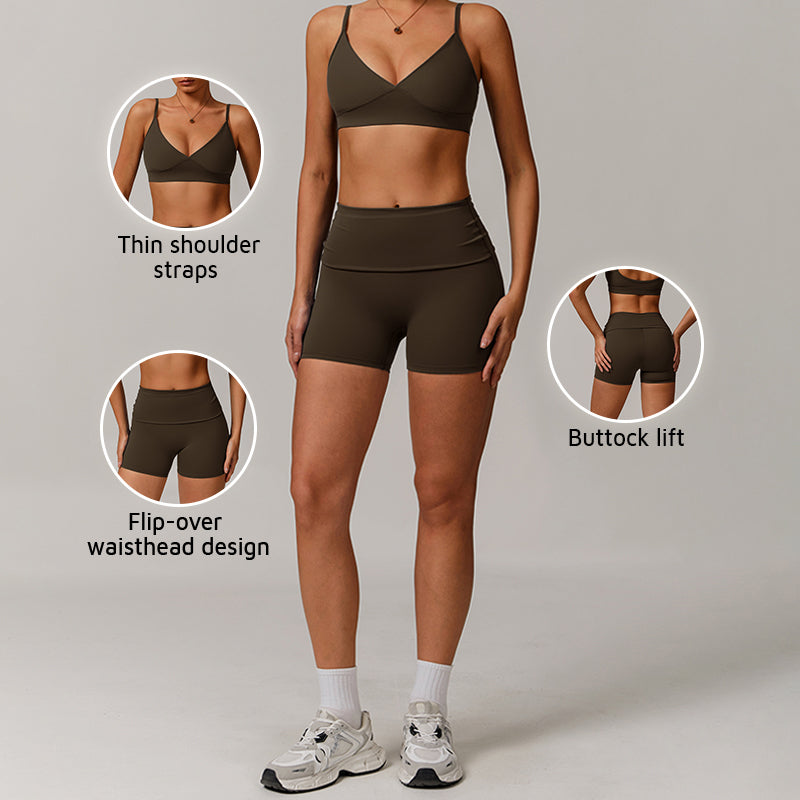• Breathable sexy sports bras & high-waisted shorts set design