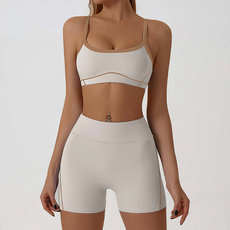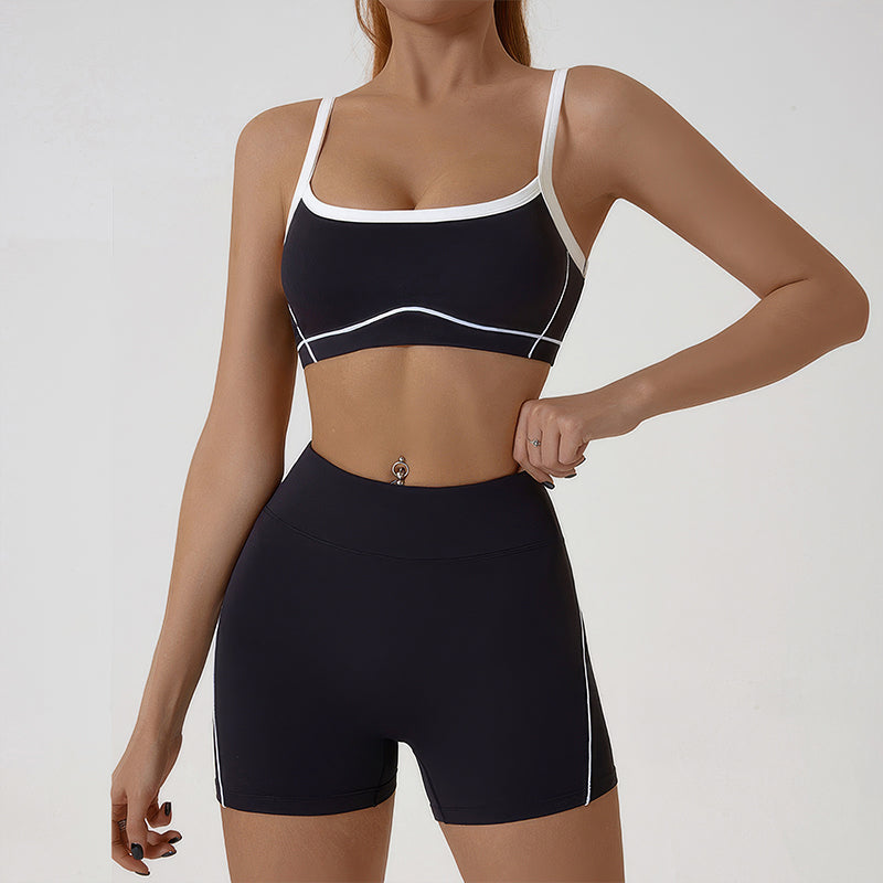 Wholesale color-blocked sports bra + high-elasticity shorts