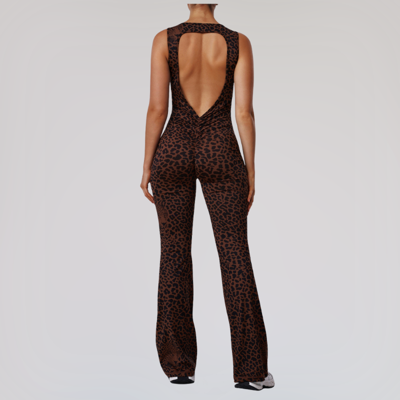 • Women's micro-flare hip-lifting backless one-piece casual sportswear Unique Design Points: • Straight from our production line to you. Enjoy factory-direct quality yoga wear. • Half-open zipper in the front + large backless design + hip wrinkle design