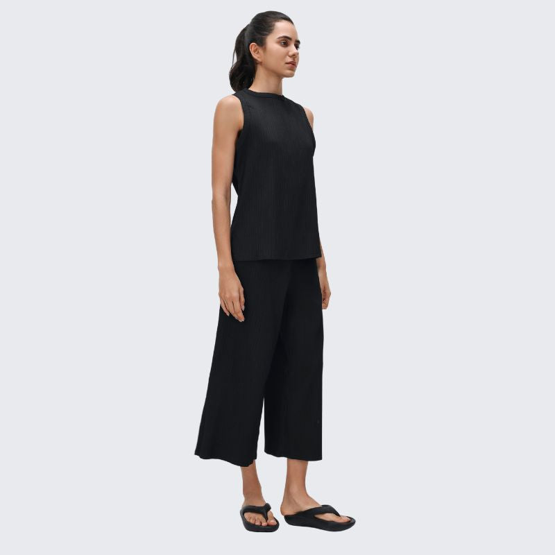 • Women's activewear set includes a crew neck sleeveless breathable tank top and loose wide-leg pants.(2-piece set)