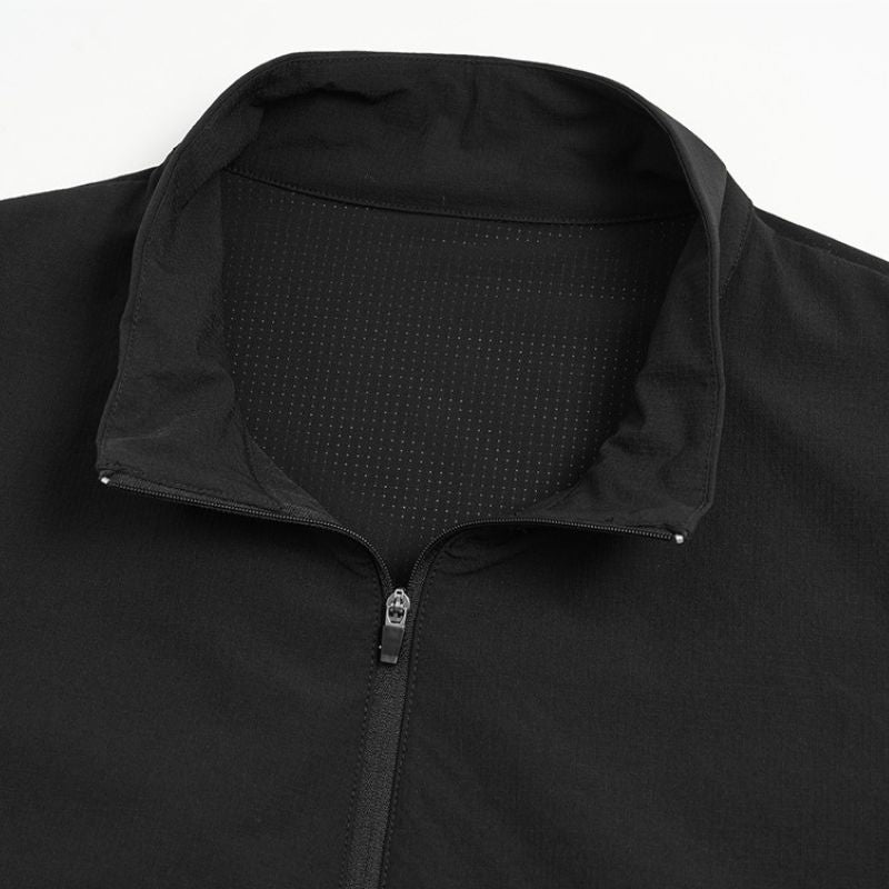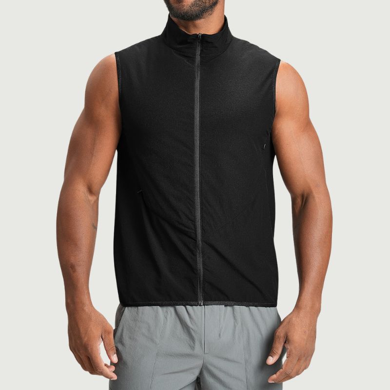 • Men's eco-friendly stand collar zip tank top, side pocket, quick dry, breathable