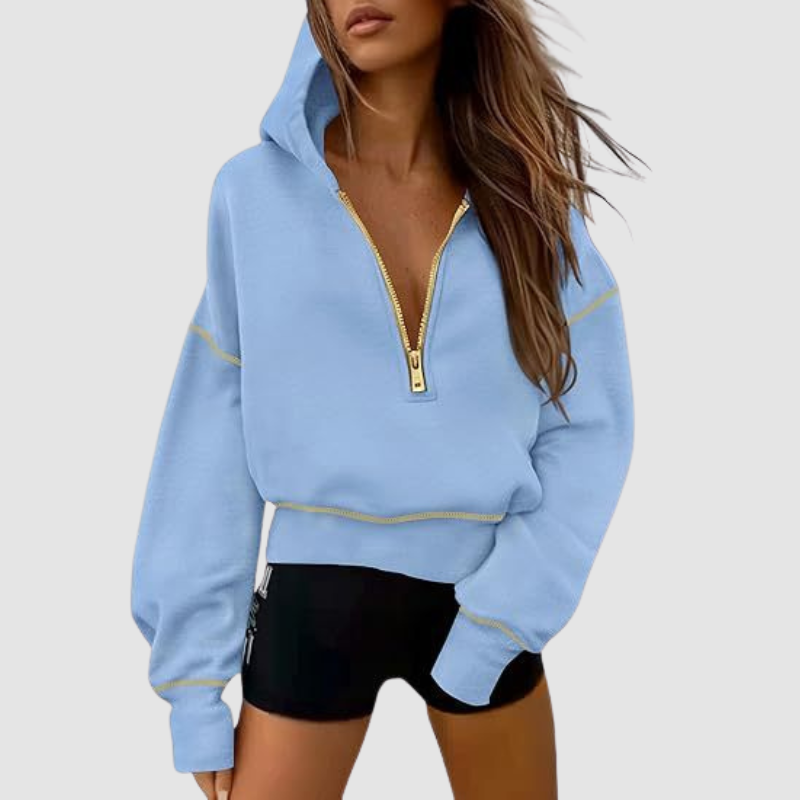 • Women's sweatshirt, lapel patchwork pullover hoodie with long sleeves and half-zip closure