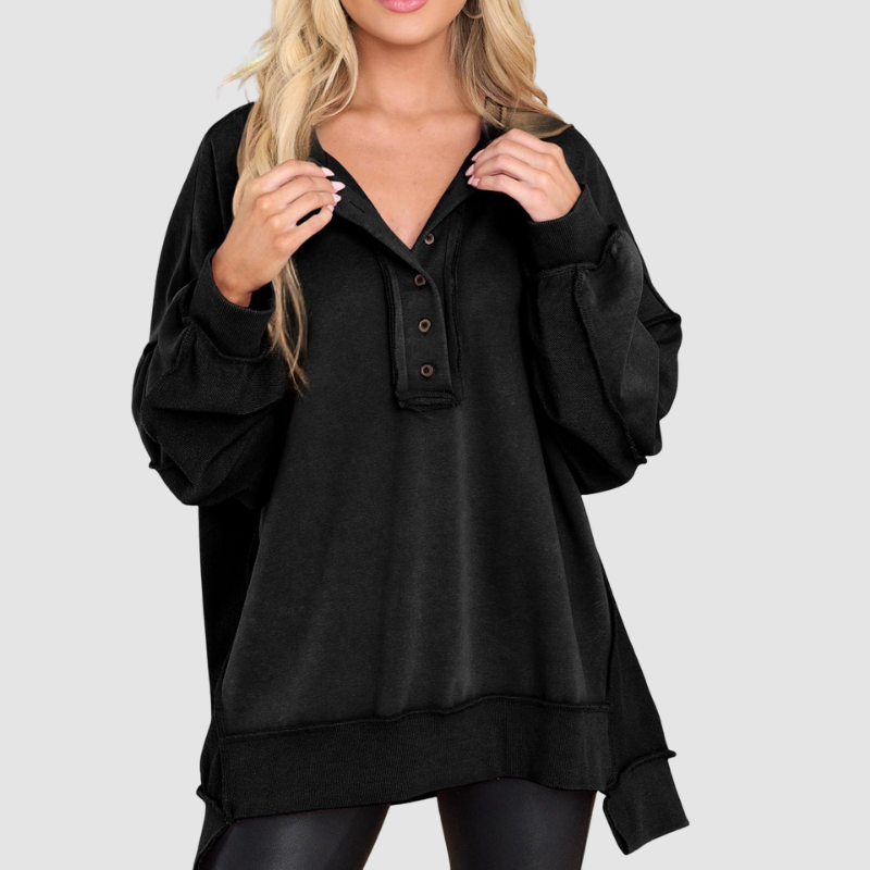 • Women's Round Neck Solid Color Button Loose Long-Sleeved Sweatshirt