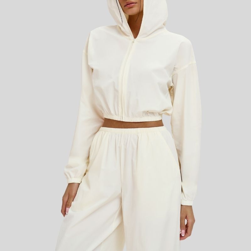 • Women's sun protection athletic jacket with loose hooded design Unique Design Points: • Straight from our production line to you. Enjoy factory-direct quality yoga wear. • Hooded zip-up cardigan design • Elasticated hem and cuffs