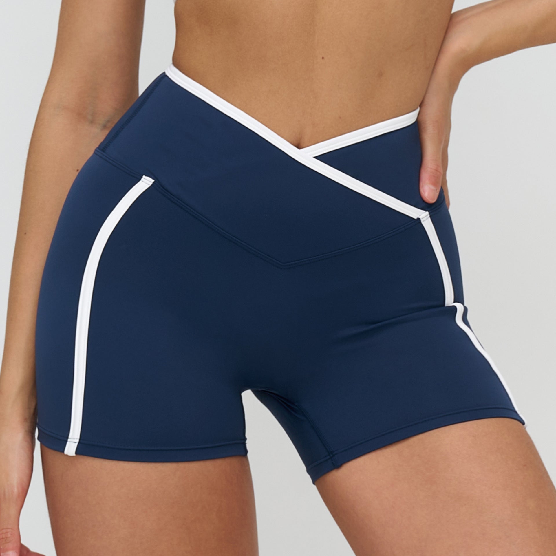 • Contrasting color piping design creates a rich layered look. Unique Design Points: • Crossover waistband prevents rolling and provides secure support, preventing slippage. • Contrasting color piping design with white three-dimensional lines creates a rich layered look. • Buttock-shaping design enhances the curves of the hips, making them appear fuller and more shapely.
