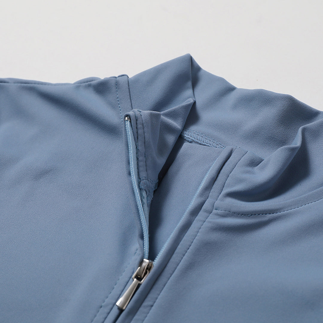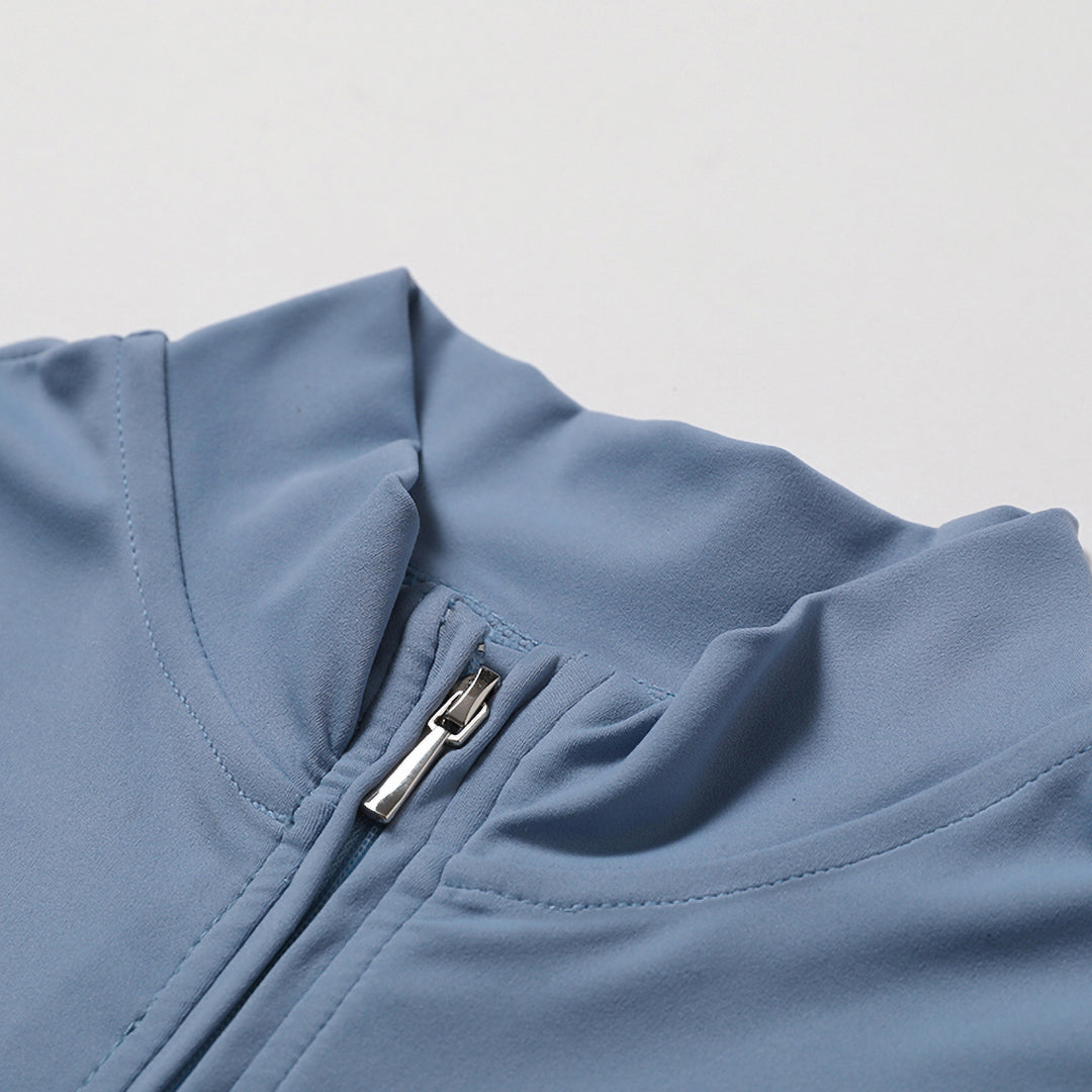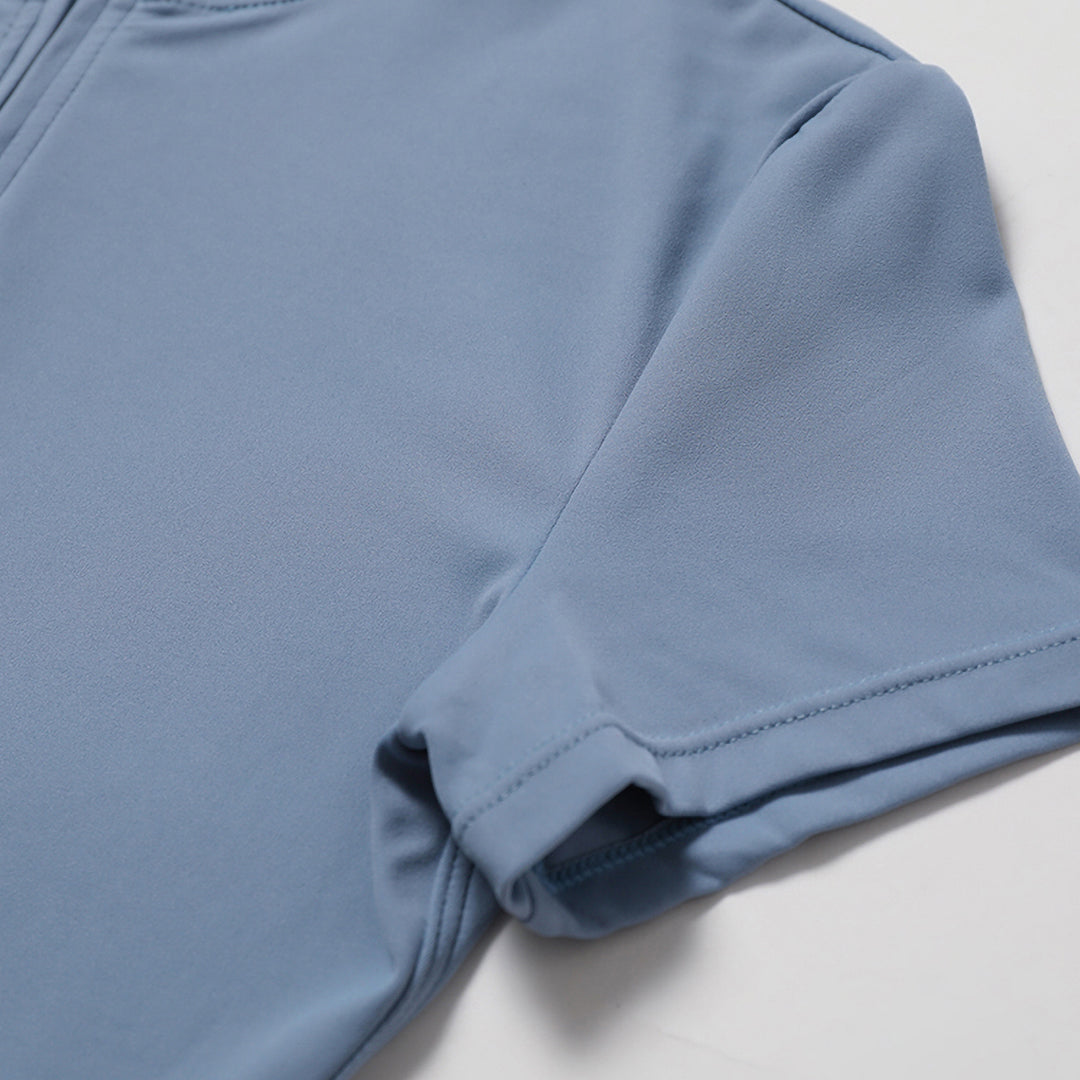 • Stand collar half zipper short sleeve design + elastic waist design to modify the waist line
