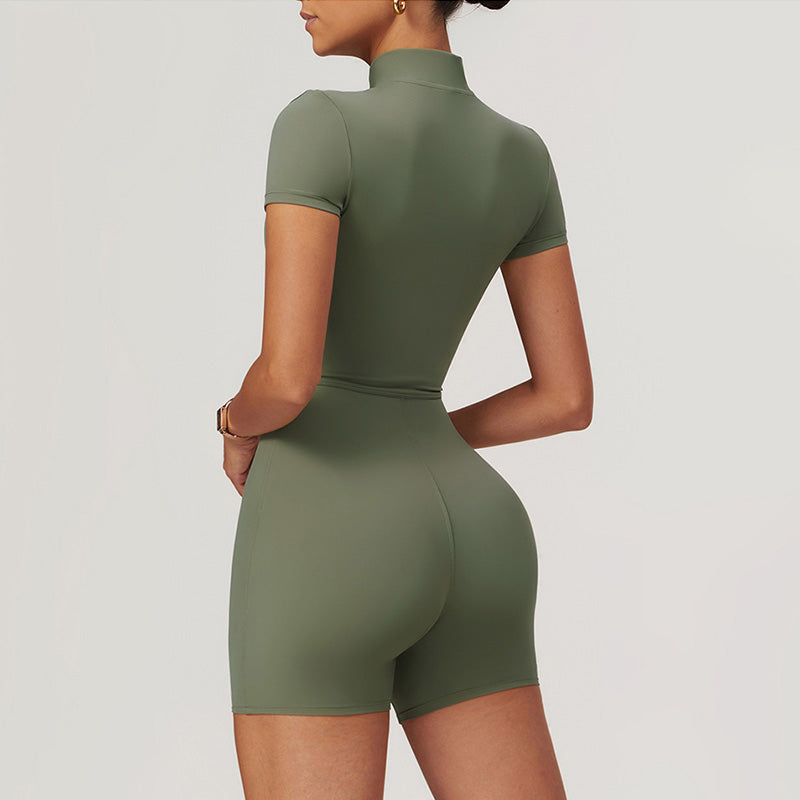 • Ultra-soft stand collar half zipper short sleeve yoga jumpsuits
