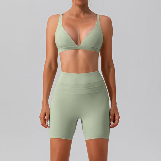 Tiras finas esportes de ioga cruzam o colete de ioga + conjunto de 2 peças