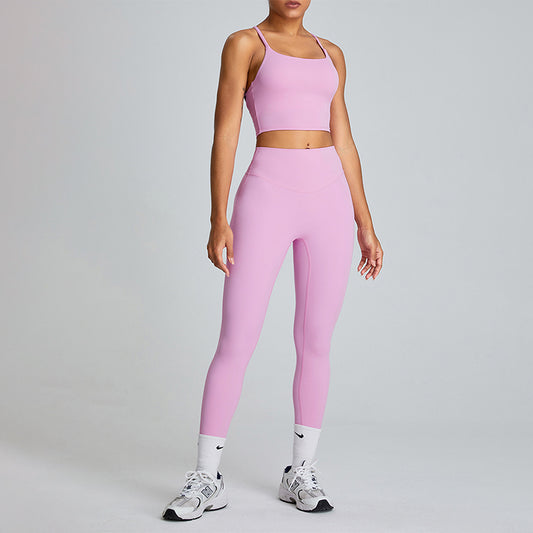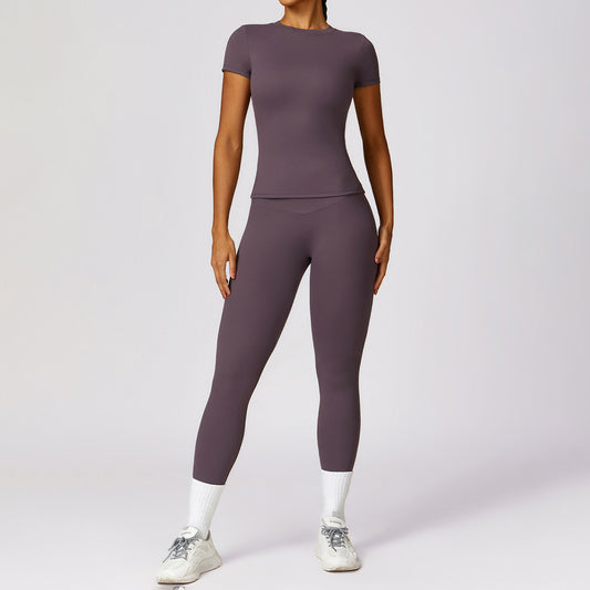 Top de ioga de manga curta e magro + Leggings de 2 peças
