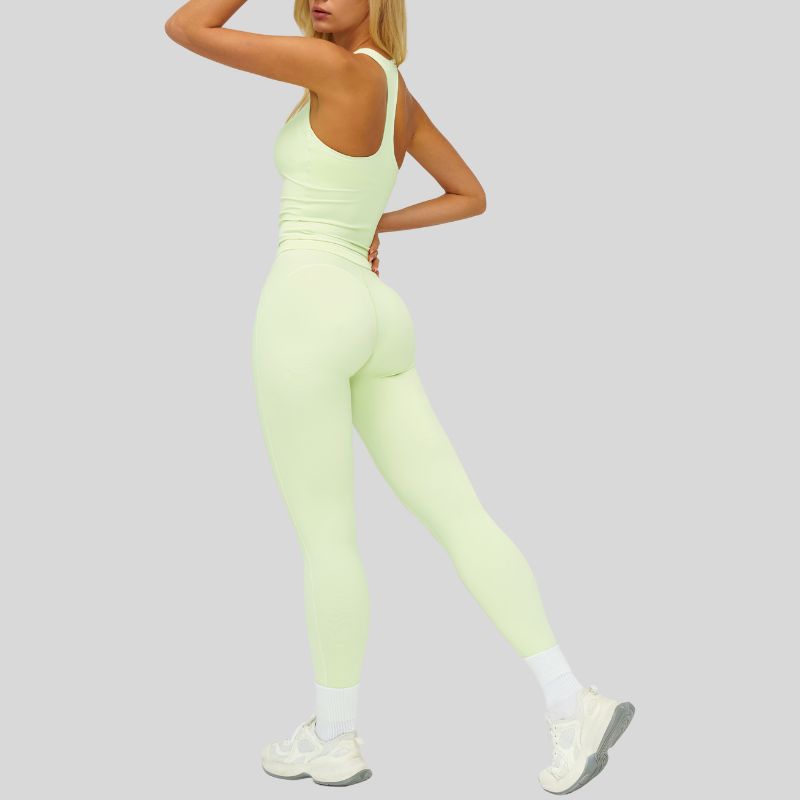 Contrasting racerback tank top+High waisted leggings 2-piece set