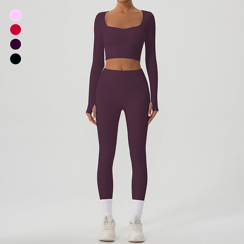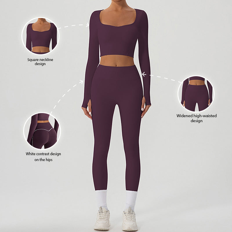 • Mangas longas cortadas e decote de U Snug-Fit e um conjunto de 2 peças de cintura alta e de cintura rápida
