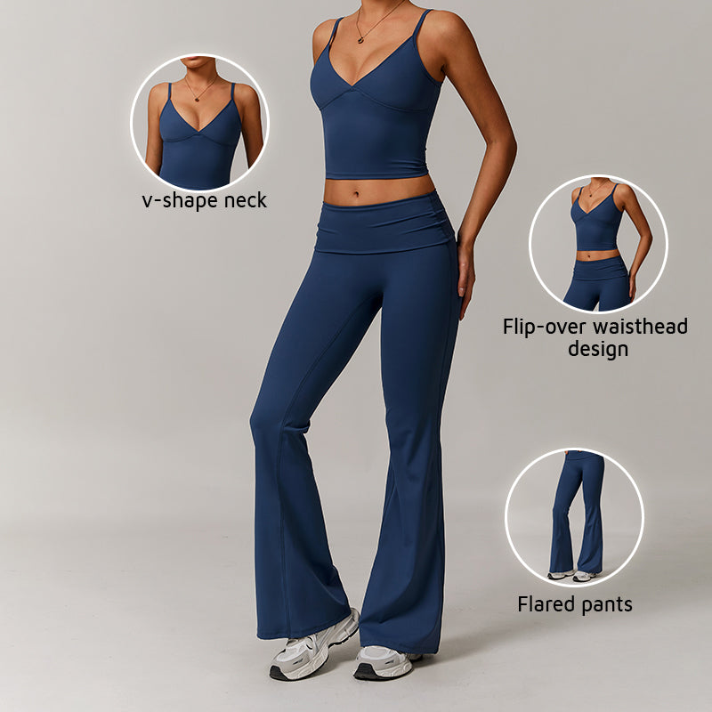 [-] Pescoço em forma de V e tanques finas tampa do tanque + conjunto de calças de perna em 2 peças