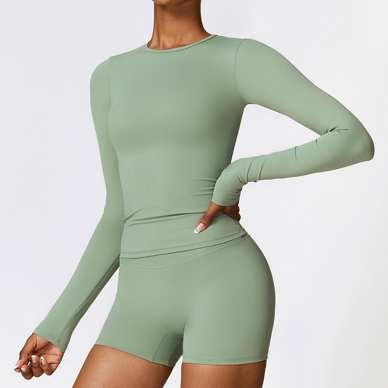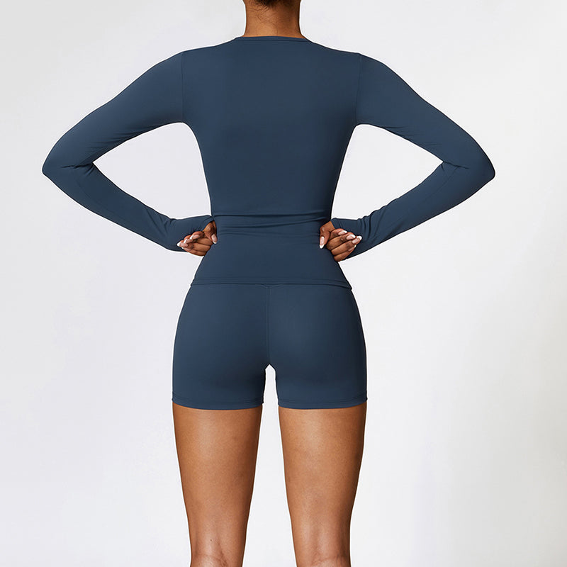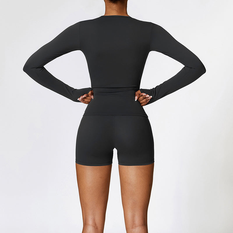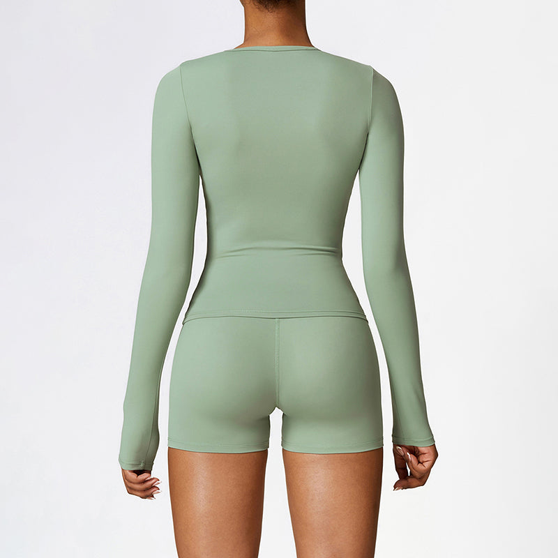 • Mangas compridas apertadas o design acrescenta uma sensação de moda e esportividade + sDesign de ajuste lim mostra a curva da cintura
