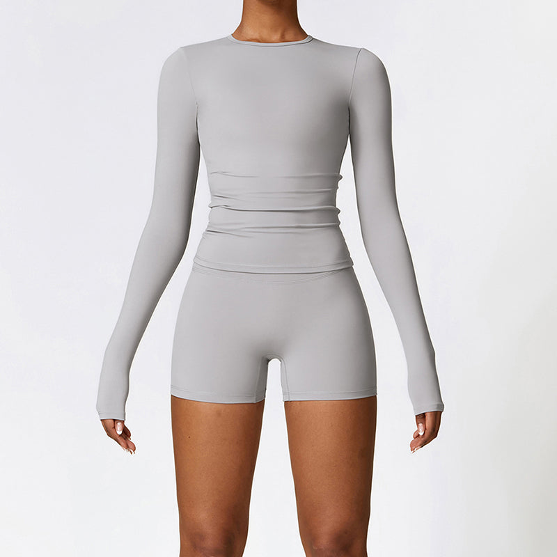 • Design de cães esportivos de manga longa e respirável e shorts de cintura alta
