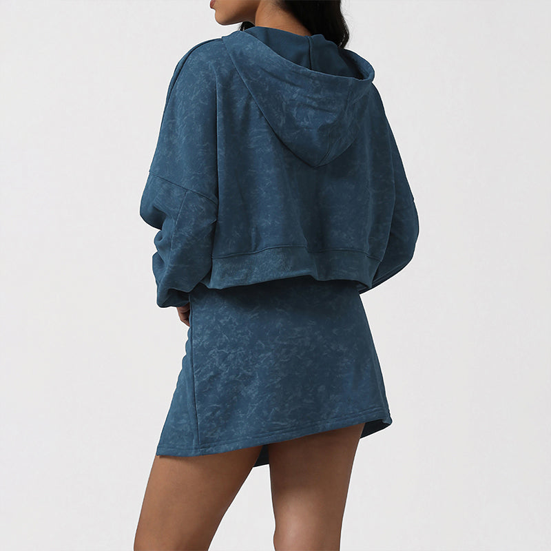 • Women's hooded, cropped, distressed texture sweatshirt Unique Design Points: • Straight from our production line to you. Enjoy factory-direct quality yoga wear. • The hooded, cropped style is easy to wear and versatile. • The distressed, faded texture combines simplicity with vintage details.